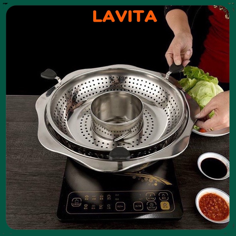 Nồi Lẩu Xoay Inox 2 Tầng 32cm Kiểu Hàn Quốc Dùng Cho Mọi Loại Bếp