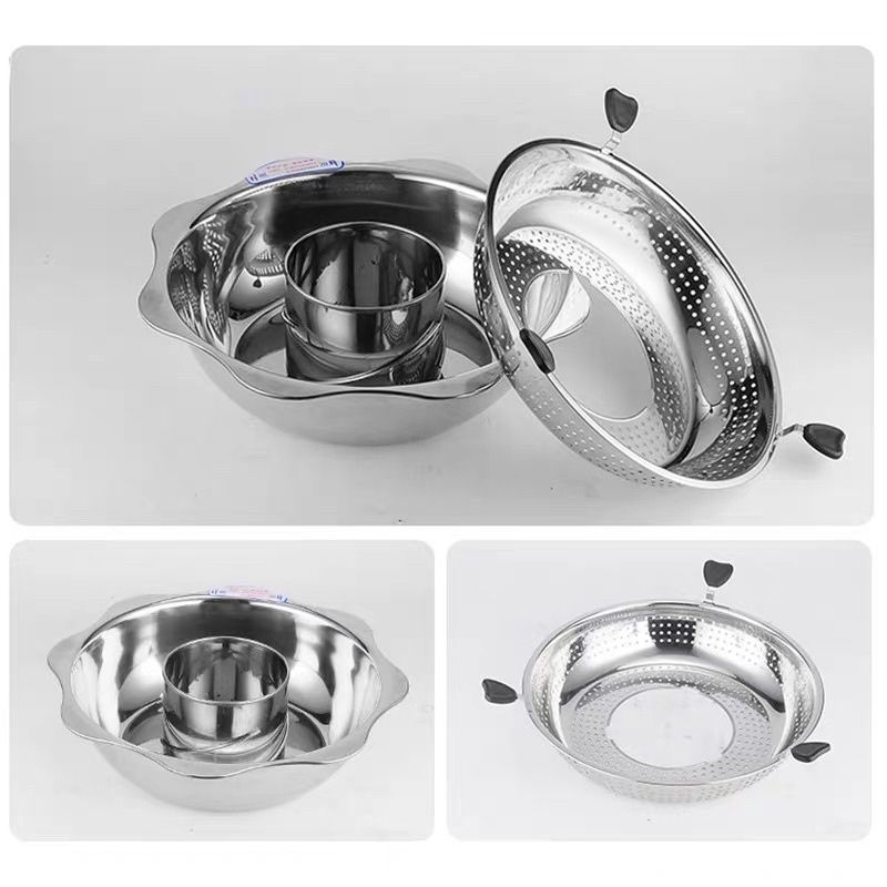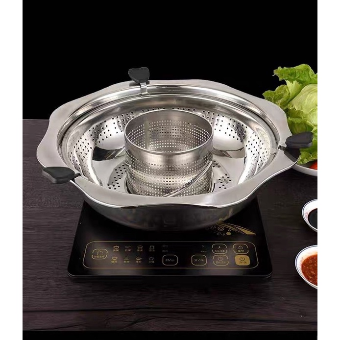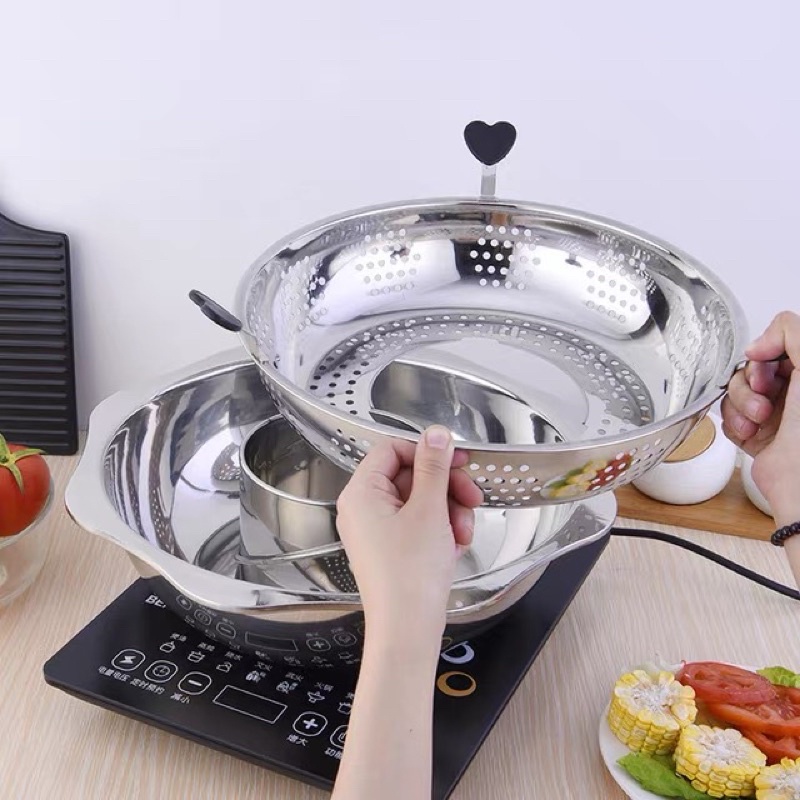 Nhà cửa & Đời sống > Dụng cụ nhà bếp > Nồi || Nồi lẩu xoay inox 2 tầng Hàn Quốc,nồi lẩu xoay 2 tầng inox không kén bếp dùng được cả bếp từ và bếp gas CamCamHomeCòn hàng
