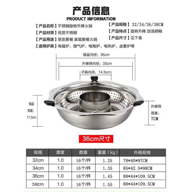 ❤Nồi lẩu xoay inox 2 trong 1 cao cấp sz 32cmDÙNG CHO MỌI LOẠI BẾP