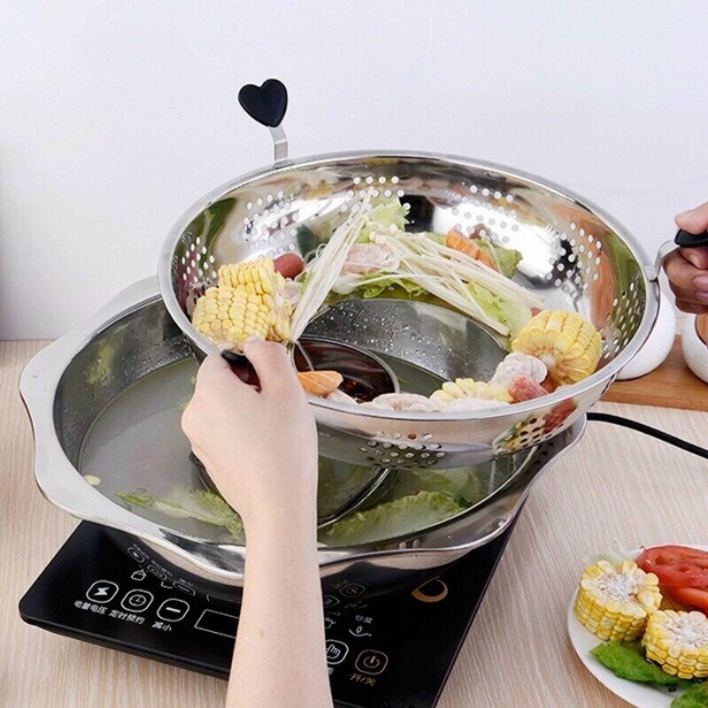 Với thiết kế cực kỳ thông mình và tiện lợi. Nồi chia làm 2 tầng và 2 khoang, đáp ứng được sở thích của cả gia đình. Với 2 khoang có thể dung nước cùng 1 lúc. Còn thiết kế 2 tầng với nồi cố định và 1 khay khi xoay lên thì có thể lọc được toàn bộ đồ ăn đã nhúng. Giờ thì các mẹ khi ăn khỏi phải lo ngồi vớt mà vẫn bị sót đồ ăn rồi ạ. Còn nếu em tả mà vẫn chưa hiểu thì xem clip em up để thấy tại sao nồi lẩu này lại HOT nhé.
