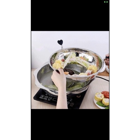 Nhà cửa & Đời sống > Dụng cụ nhà bếp > Nồi || Nồi lẩu xoay inox 2 tầng size 32cm,nồi lẩu không kén bếp dùng được cả bếp từCòn hàng
