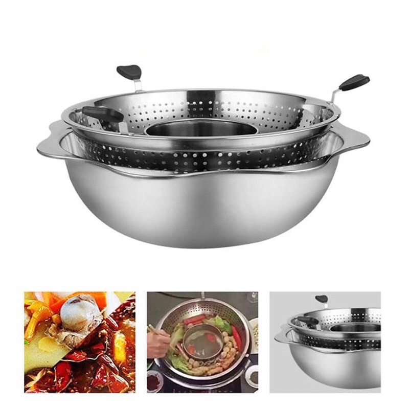 Với thiết kế cực kỳ thông mình và tiện lợi. Nồi chia làm 2 tầng và 2 khoang, đáp ứng được sở thích của cả gia đình. Với 2 khoang riêng biệt có thể chọn 2 loại nước dùng cùng 1 lúc, có thể chọn cay và không cay. Còn thiết kế 2 tầng với nồi cố định và 1 khay khi xoay lên thì có thể lọc được toàn bộ đồ ăn đã nhúng. Giờ thì các mẹ khi ăn khỏi phải lo ngồi vớt mà vẫn bị sót đồ ăn rồi ạ. Còn nếu em tả mà vẫn chưa hiểu thì xem clip em up để thấy tại sao nồi lẩu này lại HOT nhé.