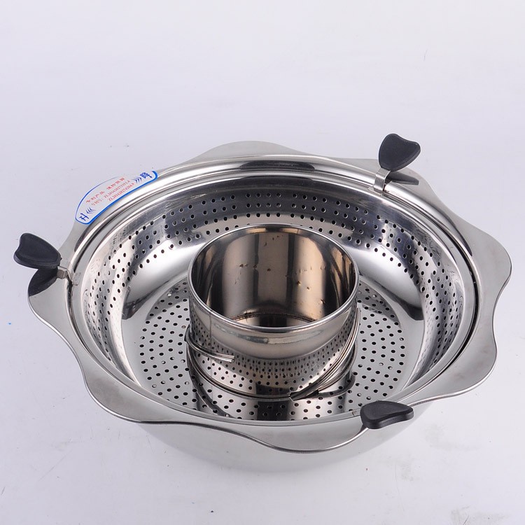 Nồi Lẩu Xoay Inox 2 Trong 1 Cao Cấp Thiết Kế Thông Minh Tiện Lợi, Chia Làm 2 Tầng Và 2 Ngăn