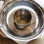 Thiết kế 2 tầng với 1 nồi cố định và 1 ngăn phía trên xoay nên có thể lọc thức ăn đã nhúng mà ko lo phải ngồi vớt nhanh không thì bén nồi và nhừ thức ăn