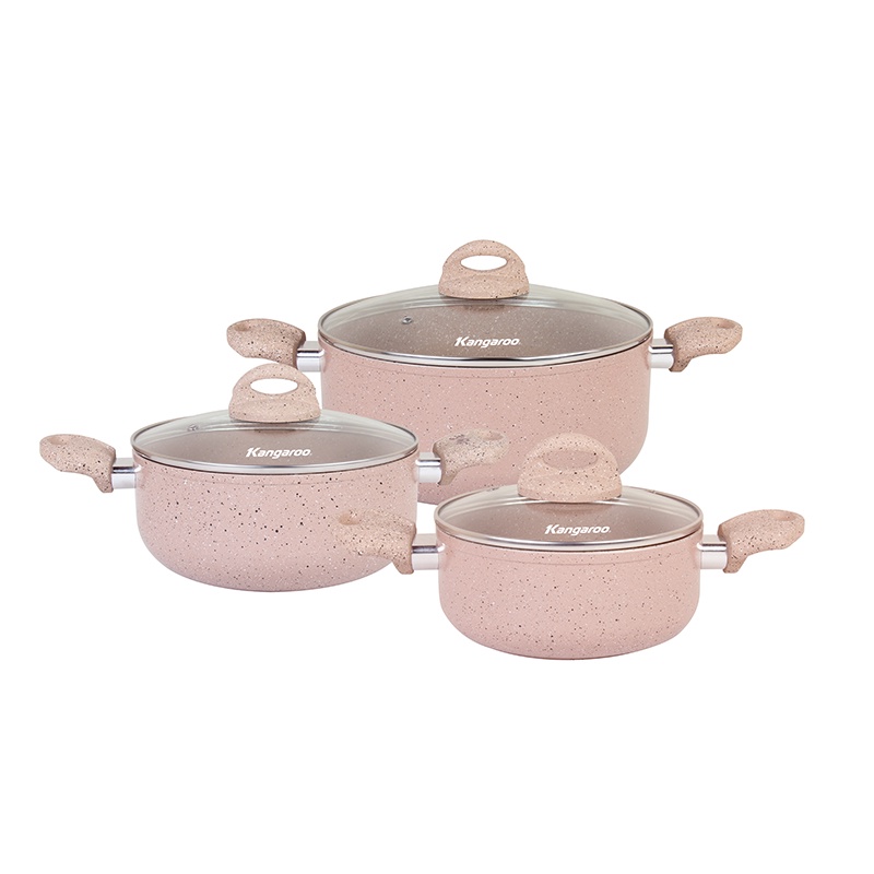 Bộ combo nồi chảo Kangaroo KG933 làm từ chất liệu nhôm có khả năng gia truyền nhiệt nhanh, hấp thu nhiệt tốt, làm thức ăn mau chính, giúp bạn tiết kiệm khá nhiều thời gian.