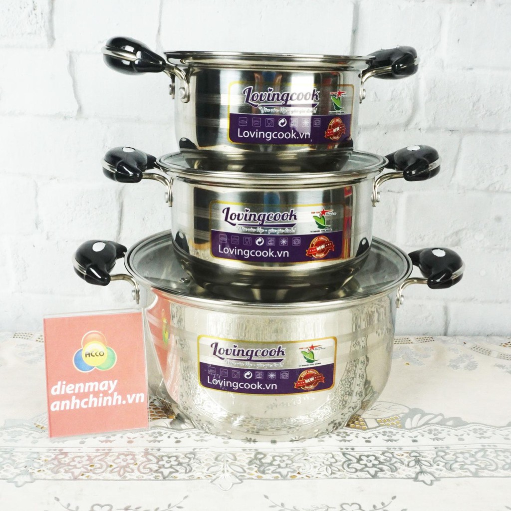 Bộ nồi Lovingcook Inox 3 cái 1D LC-681 dễ sử dụng cho gia đình