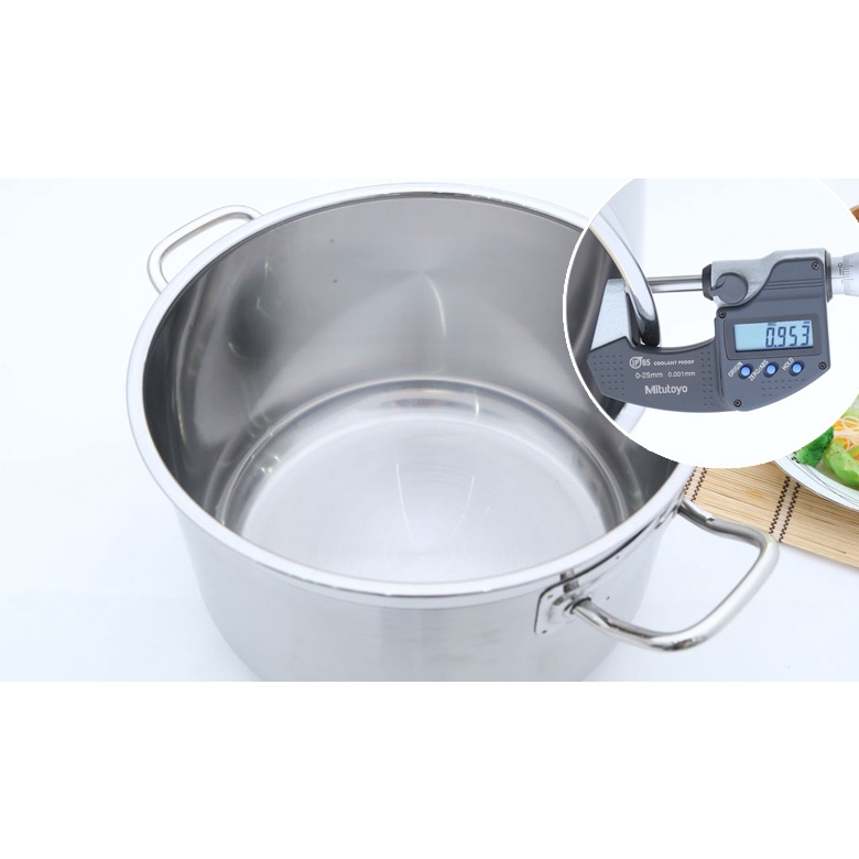 - Nồi 3 đáy rất dày, inox sáng bóng.