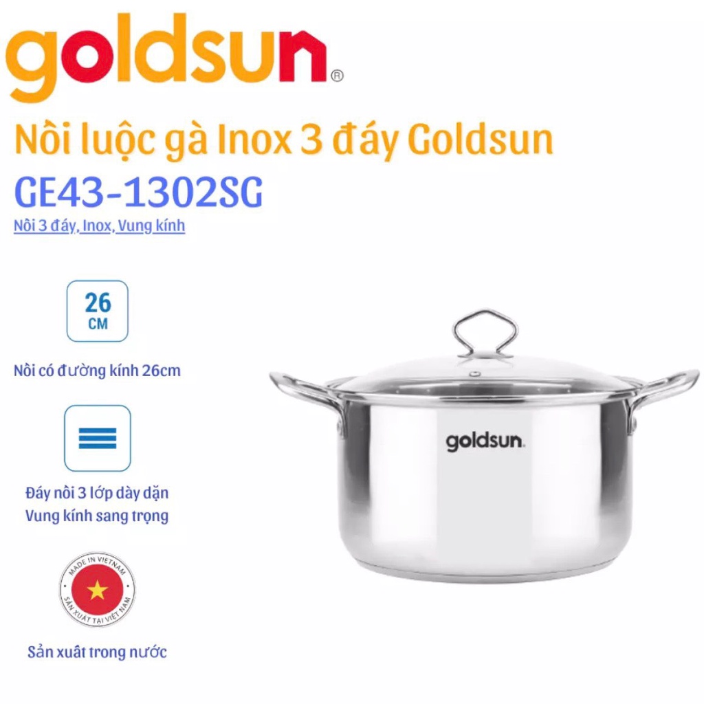 Nồi luộc gà, 3 đáy Từ, inox Goldsun GE43-1302SG size 26-28-30cm - Hàng chính hãngVỀ GOLDSUN