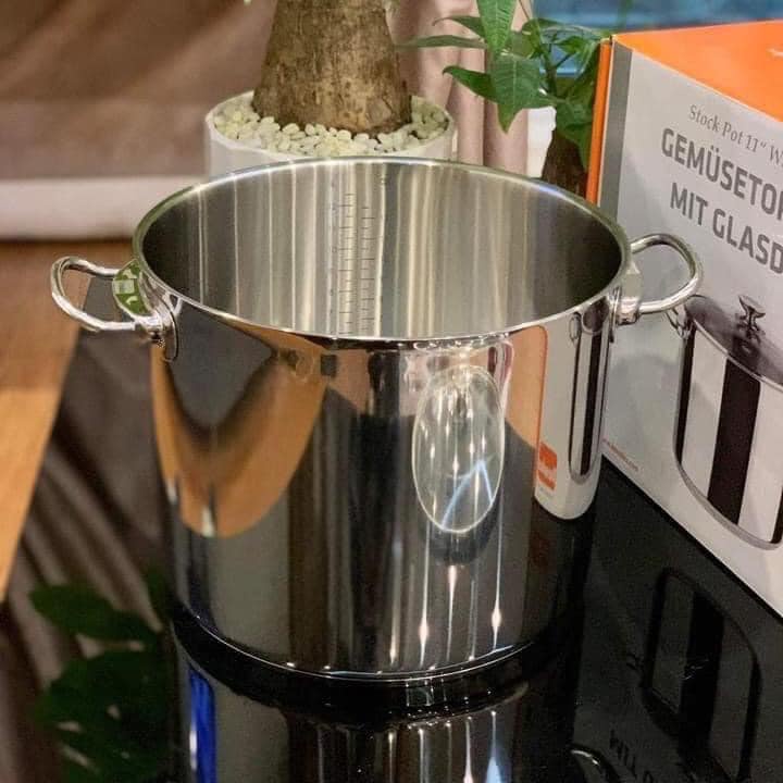 Nồi luộc gà, nấu phở Berndes 12 lít đáy 5 lớp, phải nhấn mạnh nồi rất dày dặn.👉Đường kính 28cm, dung tích 12 lít thoải mái luộc gà, ngan to, gà buộc cánh tiên ngày tết