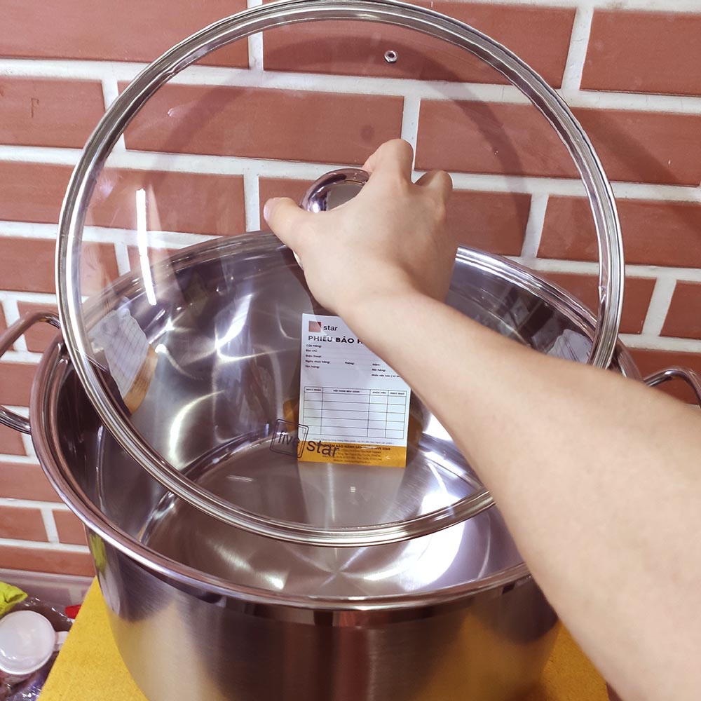 - Tay cầm và quai nồi: Tay cầm và quai nồi được làm bằng inox đặc, thiết kế thanh nên chắc chắn và vừa tay, chống nóng khi sử dụng.