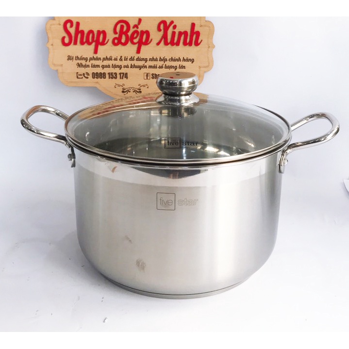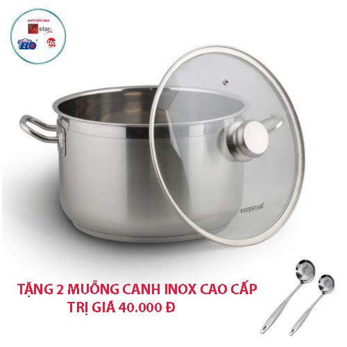 Nhà cửa & Đời sống > Dụng cụ nhà bếp > Nồi || Nồi luộc gà FiveStar inox 430 nắp kính, tặng 2 muỗng canh (26cm / 28cm / 30cm / 32cm), 3 đáy dùng bếp từ, hồng ngoại,gasCòn hàng