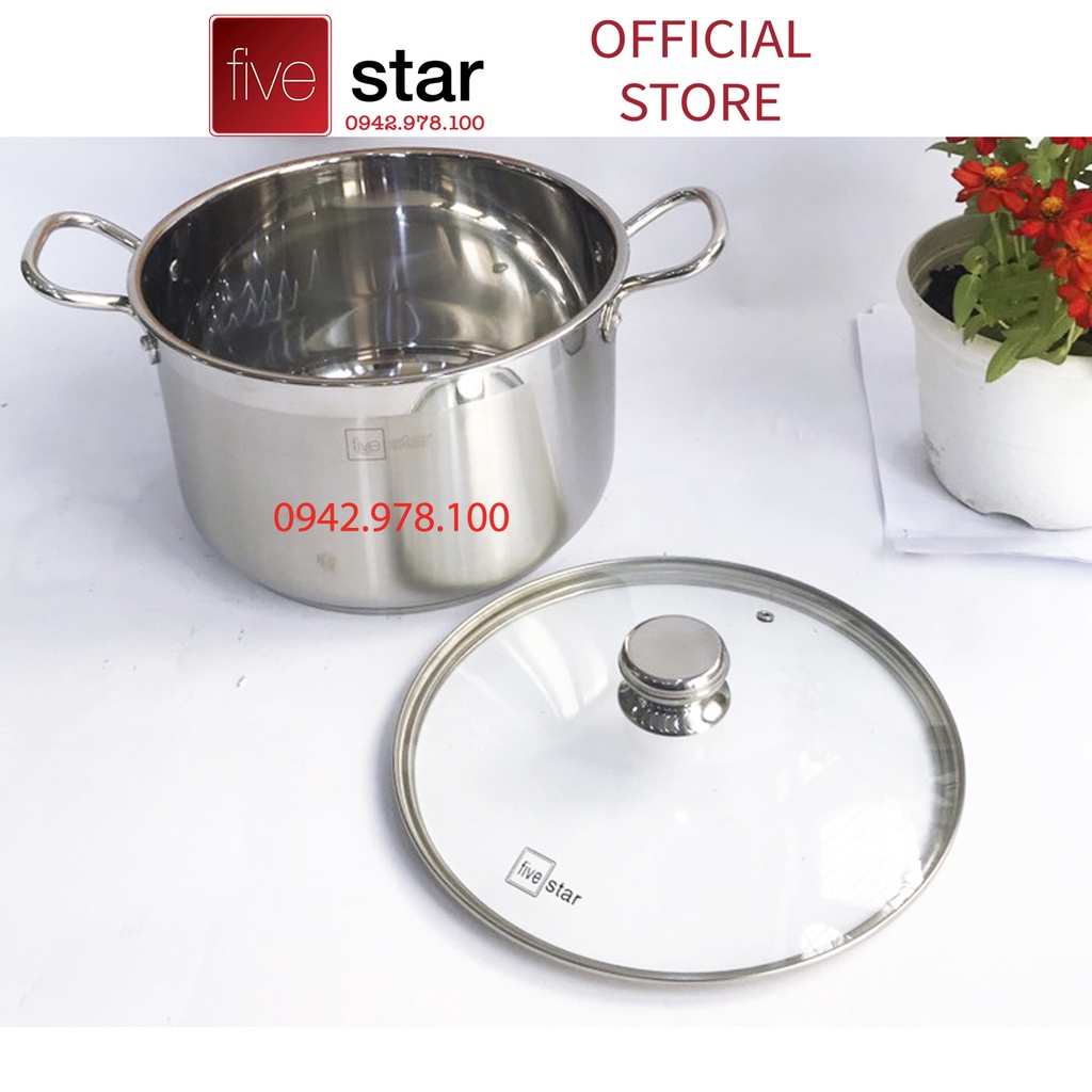 Nồi luộc gà bếp từ FiveStar inox 430 nắp kính (26cm / 28cm / 30cm / 32cm /36cm)3 đáy dùng được mọi bếp , hàng chính hãng