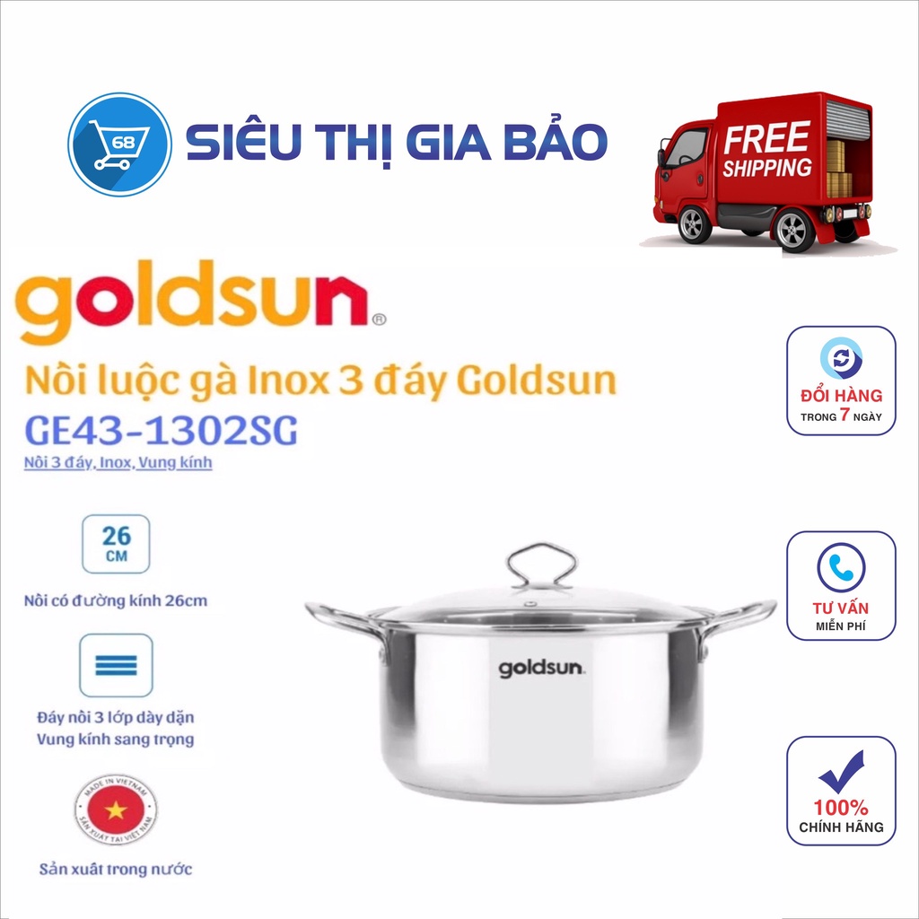 Với thiết kế hiện đại, chất liệu bền đẹp; nồi luộc gà inox Goldsun GE43-1302SG cao cấp khiến chị em “yêu bếp” khó có thể chối từ. Cấu tạo nồi 3 lớp đáy giúp sản phẩm tối ưu công năng nấu nướng, là trợ thủ tuyệt vời giúp bạn dễ dàng chuẩn bị món ngon cho cả gia đình.