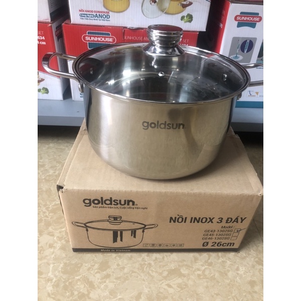 Nhà cửa & Đời sống > Dụng cụ nhà bếp > Nồi || Nồi luộc gà inox 3 đáy goldsun GE43-1302SG cao cấp, dùng được bếp từ size 26cmCòn hàng