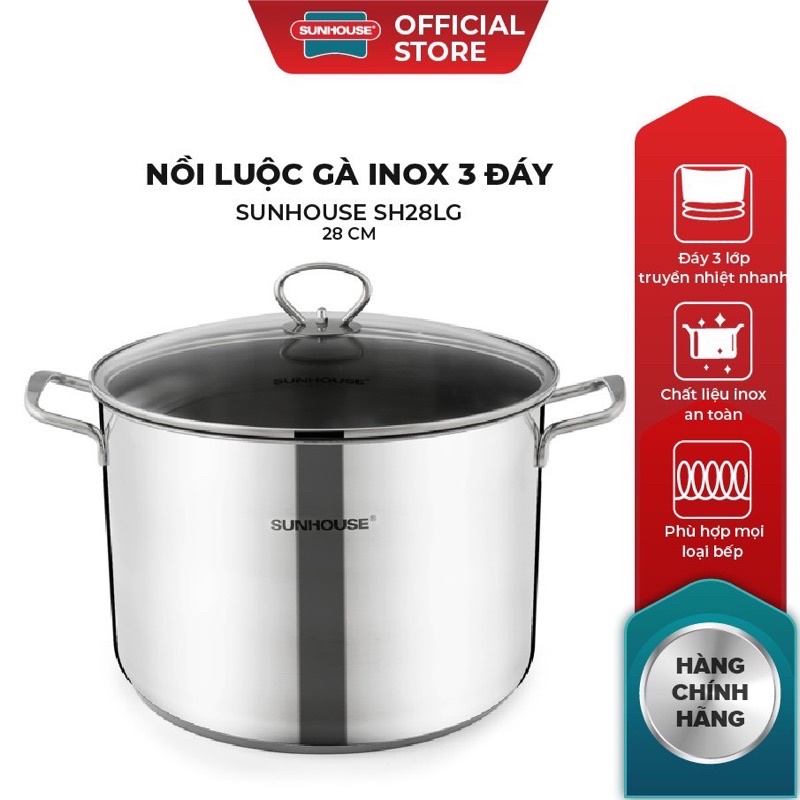 Nồi luộc gà inox 3 đáy nồi cỡ lớn SUNHOUSE SH28LG - siêu tiện lợi