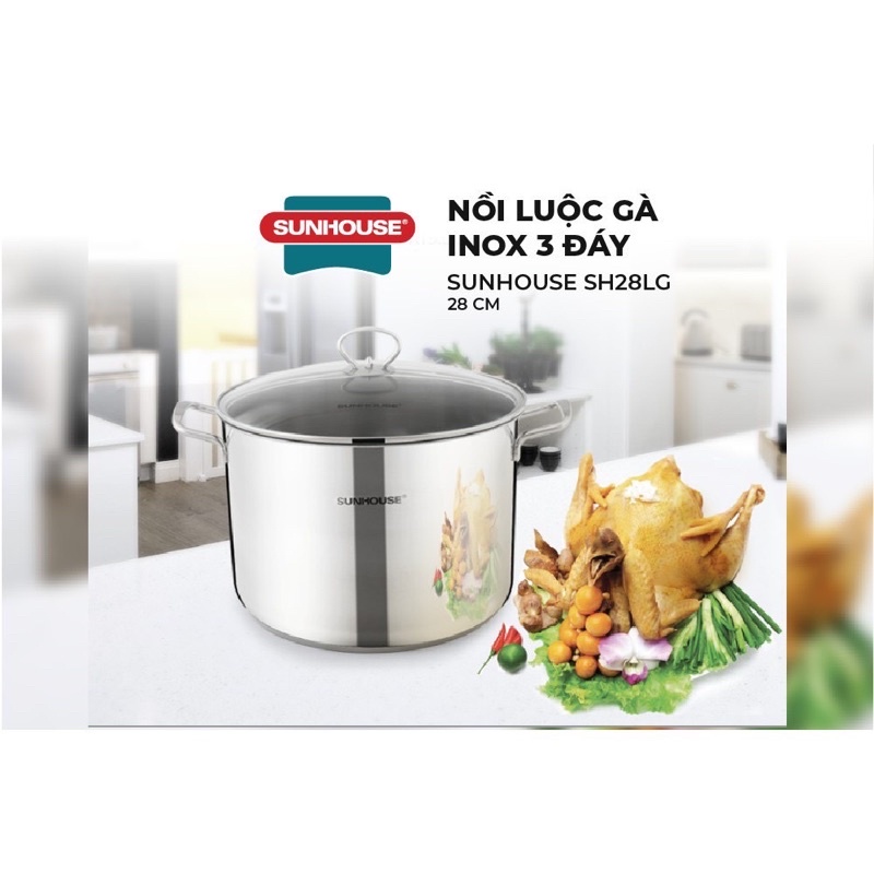 Thông số kỹ thuật Nồi luộc gà inox 3 đáy SUNHOUSE SH28LGMàu sắc: Bạc