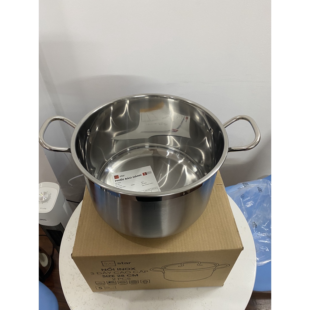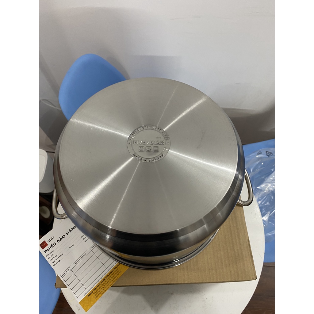 - Ưu điểm nữa của nồi Fivestar 28 cm là vung nồi được làm từ inox dày dặn, cứng bền không dễ dàng bị mất dáng khi chẳng may bị đánh rơi.