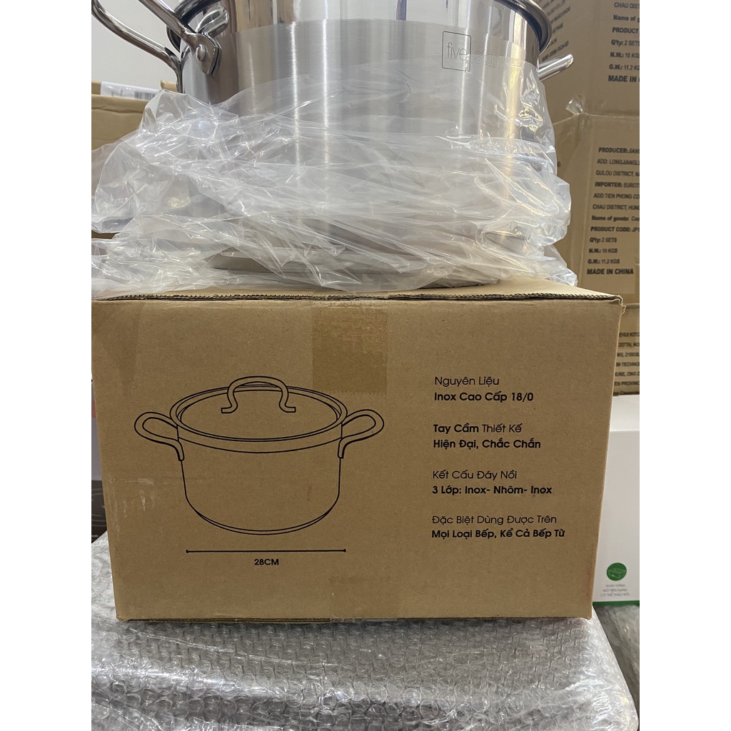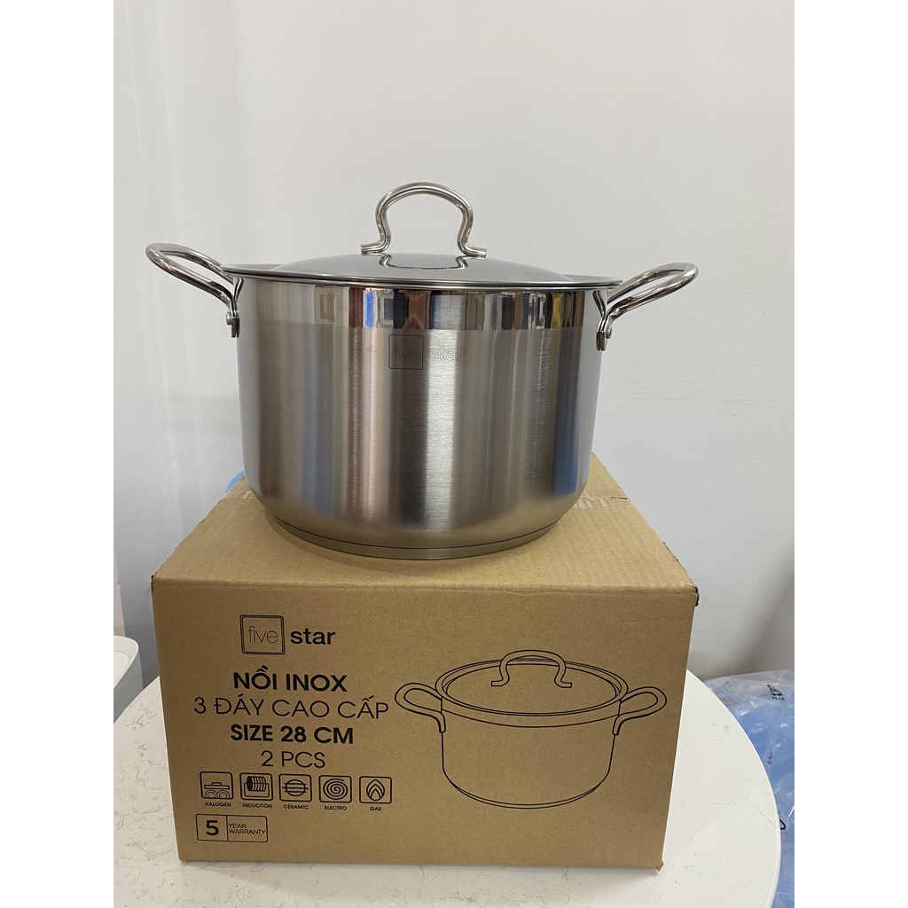 - Đặc biệt, với thiết kế đáy 3 lớp (inox 304 - nhôm 4 mm – inox 430), nồi Fivestar 28 cm vô cùng tiện lợi, dùng được cho tất cả các loại bếp, kể cả bếp điện từ.