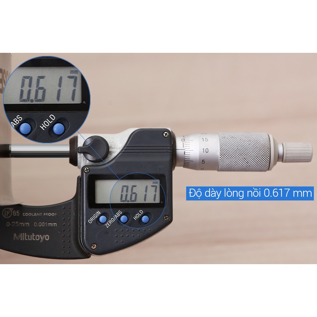 Thành nồi dày 0.7 mm, giữ nhiệt tốt, tỏa nhiệt đều nấu ăn nhanh chóng.