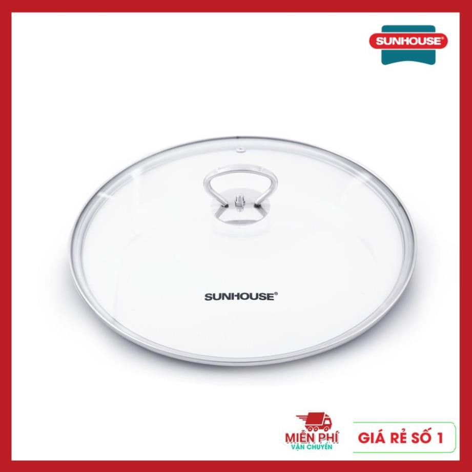 Nồi lẩu inox 1 đáy SUNHOUSE SH28LG có vung kính cường lực, dày 4mm, trong suốt, giúp bạn dễ dàng quan sát thực phẩm bên trong nồi.