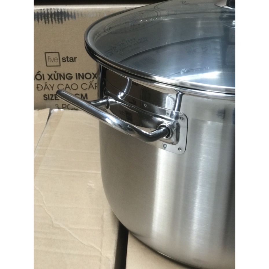 Nồi luộc gà inox 430 cao cấp Fivestar 3 đáy dùng được bếp từ , gas , hồng ngoại , tặng 2 muỗng canhXIN QUÝ KHÁCH LƯU Ý : NỒI 26CM QUAI HÀN , NỒI 28CM , 30CM , 32CM , 36CM QUAI ĐINH TÁN