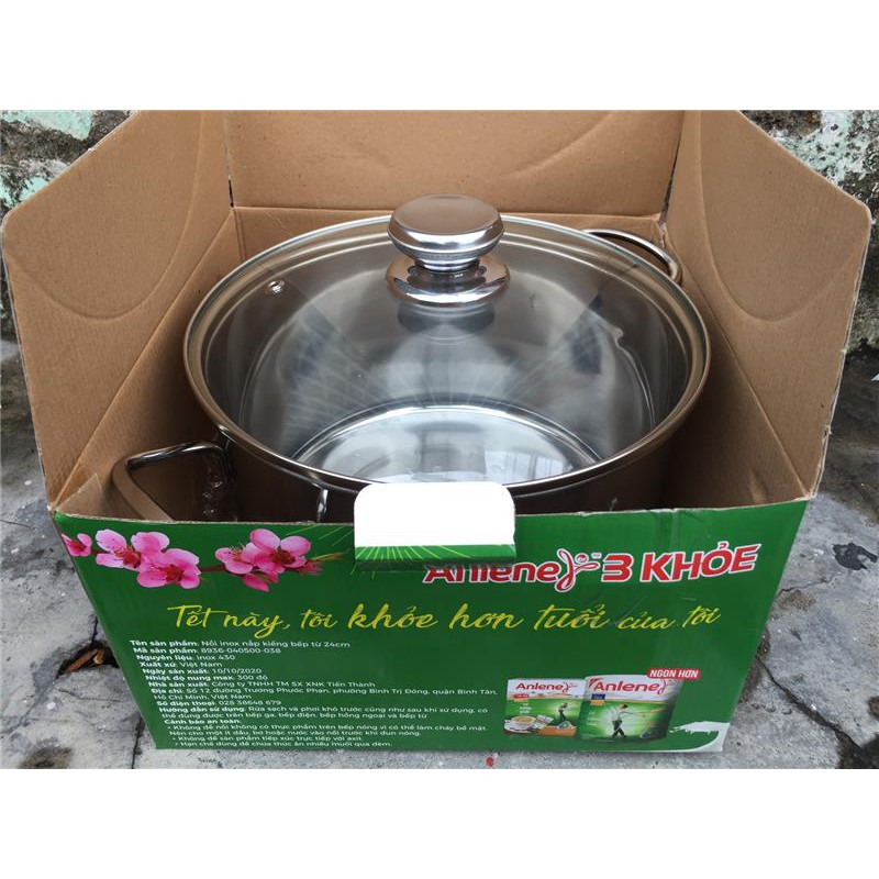 Nhà cửa & Đời sống > Dụng cụ nhà bếp > Nồi || Nồi luộc gà inox vung kính 24cm ( dày, nặng 1,8kg)Còn hàng