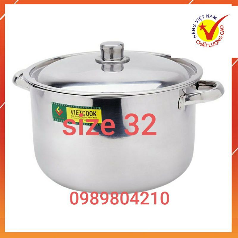 Nồi luộc gà nồi inox 32 cm ,nồi inox đun từ,nồi to luộc gà,Nồi inox 15 lit Vietcook CHÍNH HÃNG