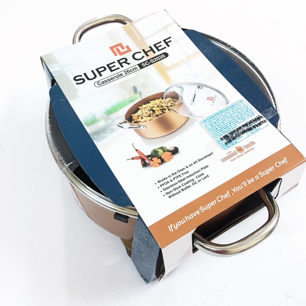 Nhà cửa & Đời sống > Dụng cụ nhà bếp > Nồi || Nồi nắp kính Chống dính SUPER CHEF Hợp kim tráng men đáy từ tay quai chống nóngCòn hàng