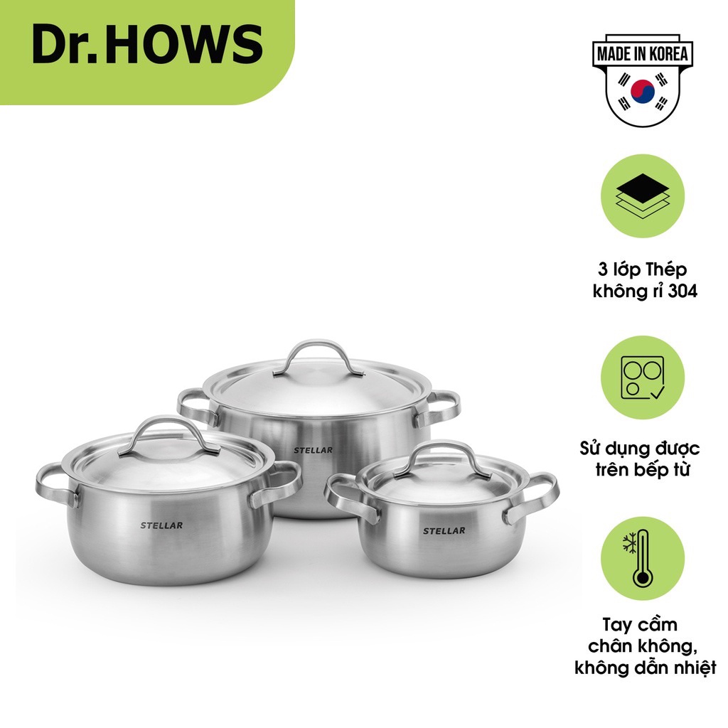 Bộ nồi nấu 03 món Inox 3 lớp Dr.Hows Stella Casserole 16-20-24cm