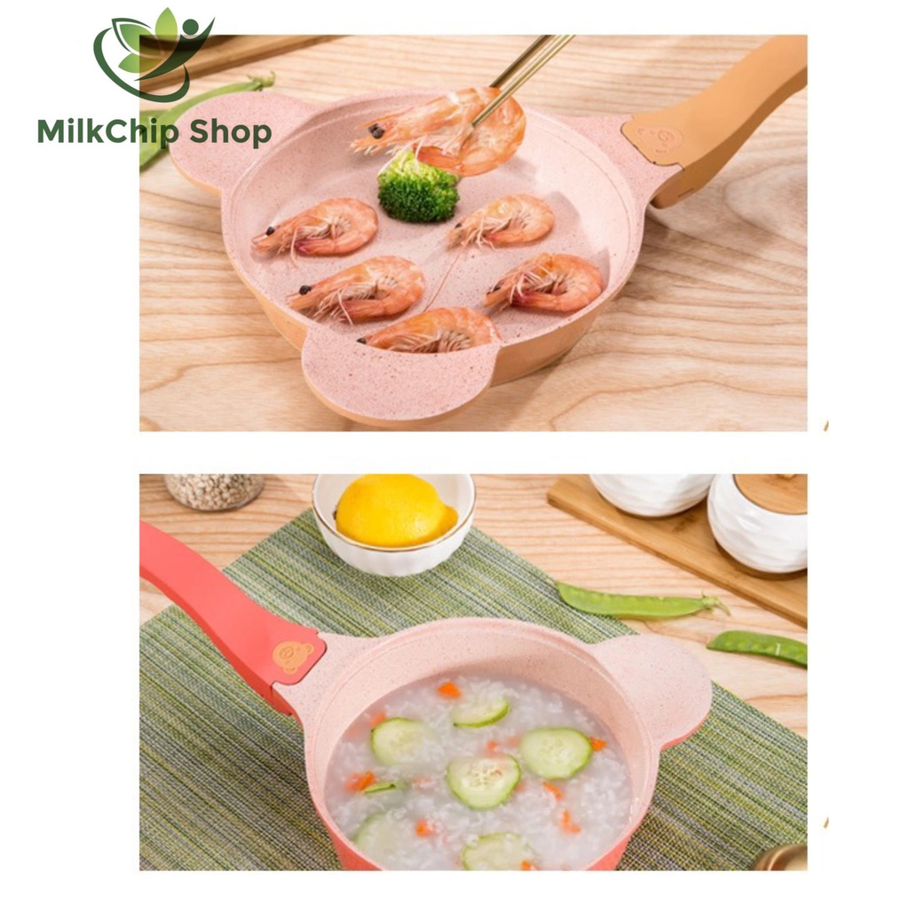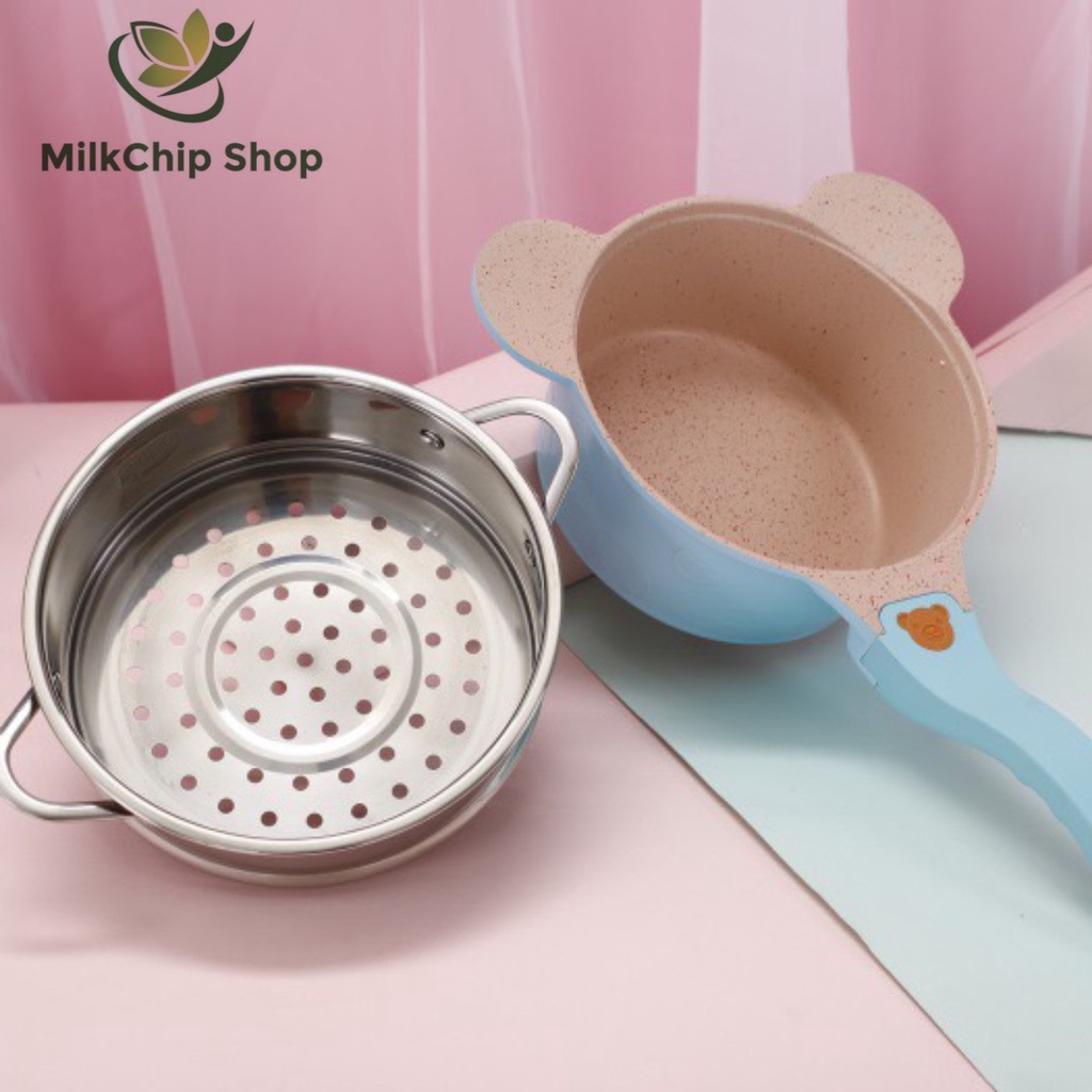 Nhà cửa & Đời sống > Dụng cụ nhà bếp > Nồi || Bộ nồi nấu ăn dặm cho bé men đá chống dính kèm chảo inox size 18 xuất Hàn hình gấu A048Còn hàng