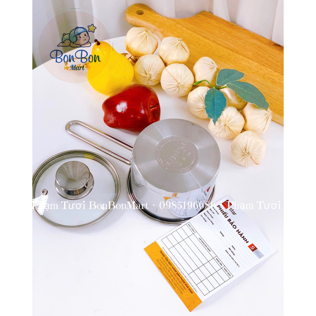 Nồi nấu bột, cháo 3 đáy inox five star 12cm- hàng loại 1 dày dặn, sáng bóng phân phối chính hãng Bonbon Mart