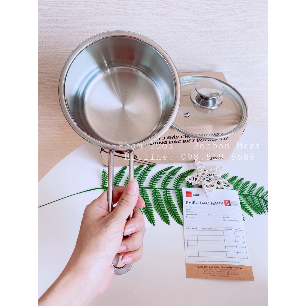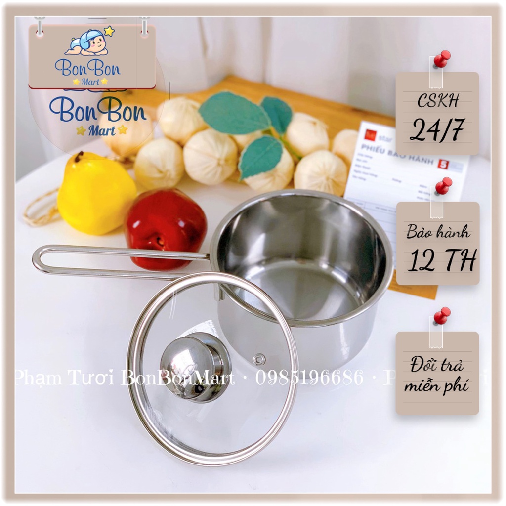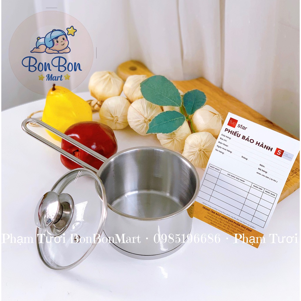 Nồi nấu bột, cháo inox 3 đáy 14cm five star hàng loại 1 dày dặn, sáng bóng phân phối chính hãng Bonbon Mart