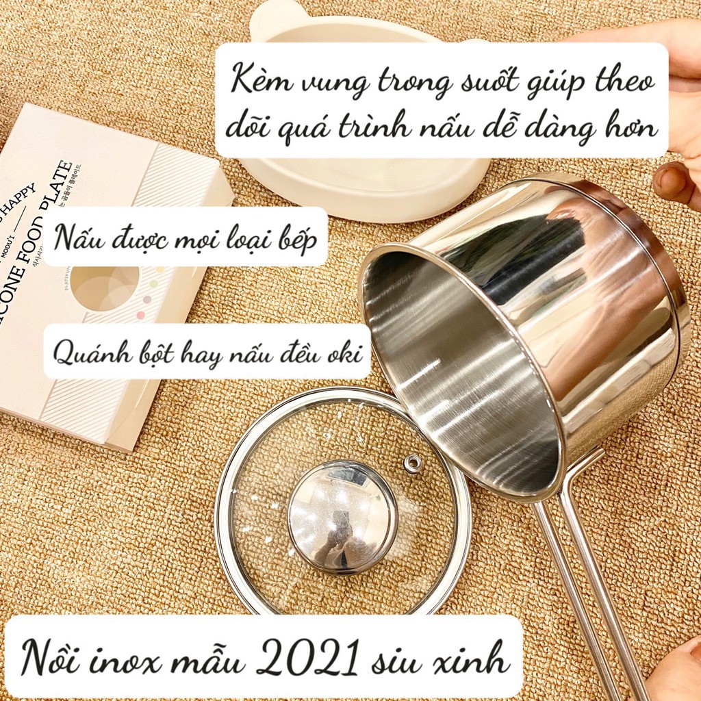 NỒI NẤU BỘT/CHÁO INOX 3 ĐÁY 14CM FIVE STAR - HÀNG LOẠI 1 DÀY DẶN, SÁNG BÓNG