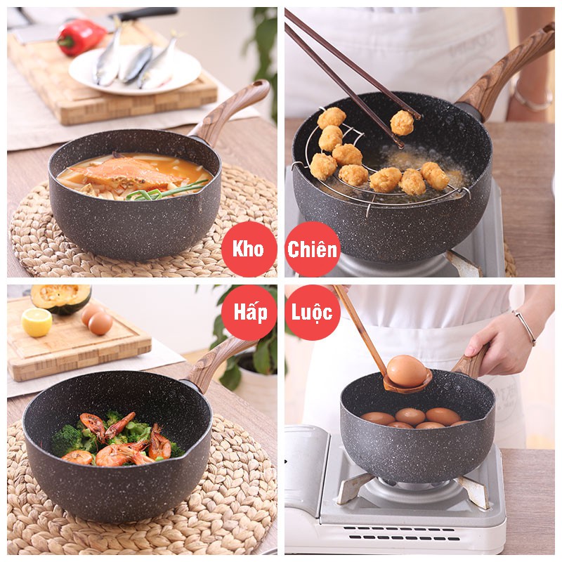 Giới thiệu Nồi Nấu Bột Chống Dính - Nồi Quấy Bột Size 16cm - 18cm Dùng Có Bếp Từ, Bếp Gas, Bếp Hồng Ngoại - Bh 6 Tháng