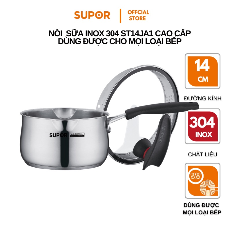 Giới thiệu Nồi nấu bột, nấu mỳ Supor inox 304 vung kính sử dụng cho mọi loại bếp ST14JA1-14cm
