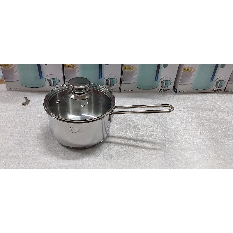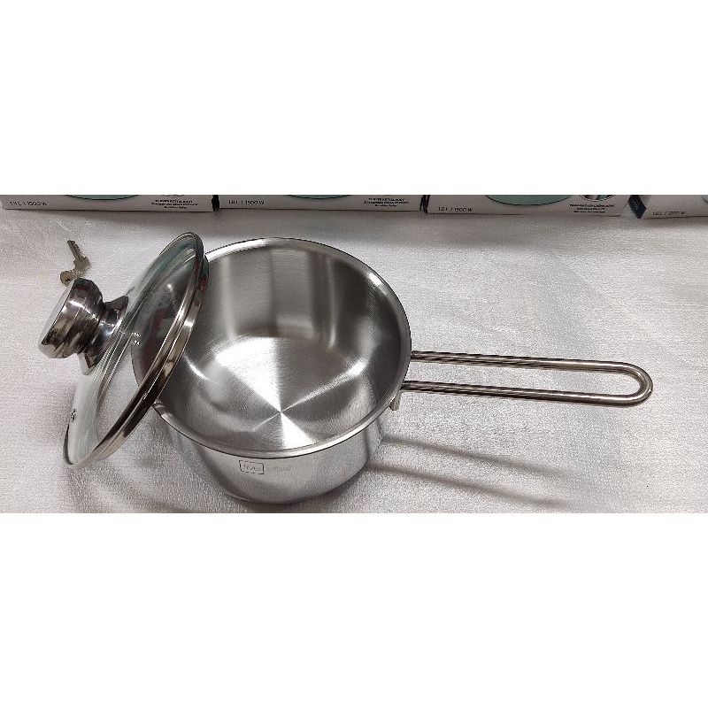 - Nắp thủy tinh cường lực chịu được va đập có viền bo kim loại để giữ kín hỏi, lỗ nhỏ trên vung chống tràn thực phẩm.