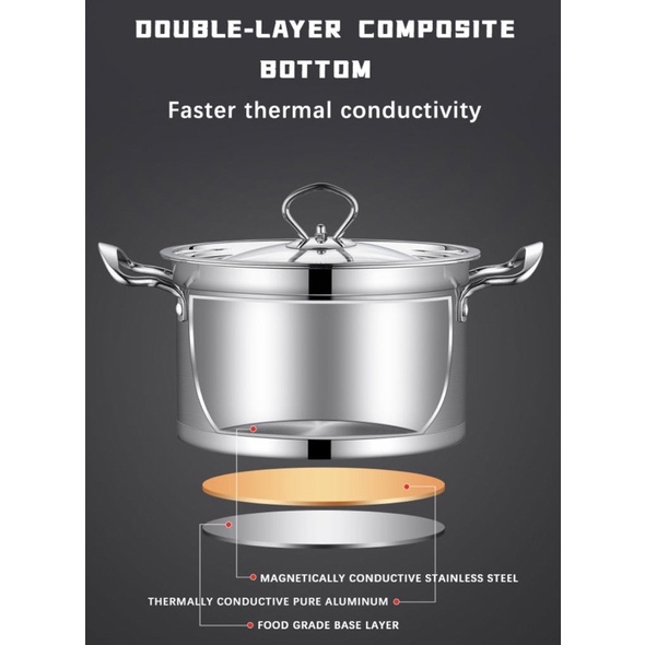 Nồi nấu canh inox 3 đáy kèm nắp đậy kính cường lực dùng được bếp từ dày dặn, chắc chắn 18/22cm1. ĐẶC ĐIỂM NỒI NẤU CANH INOX 3 ĐÁY: