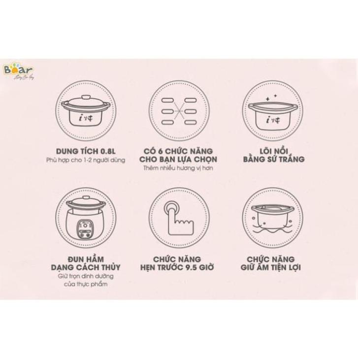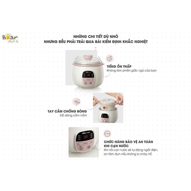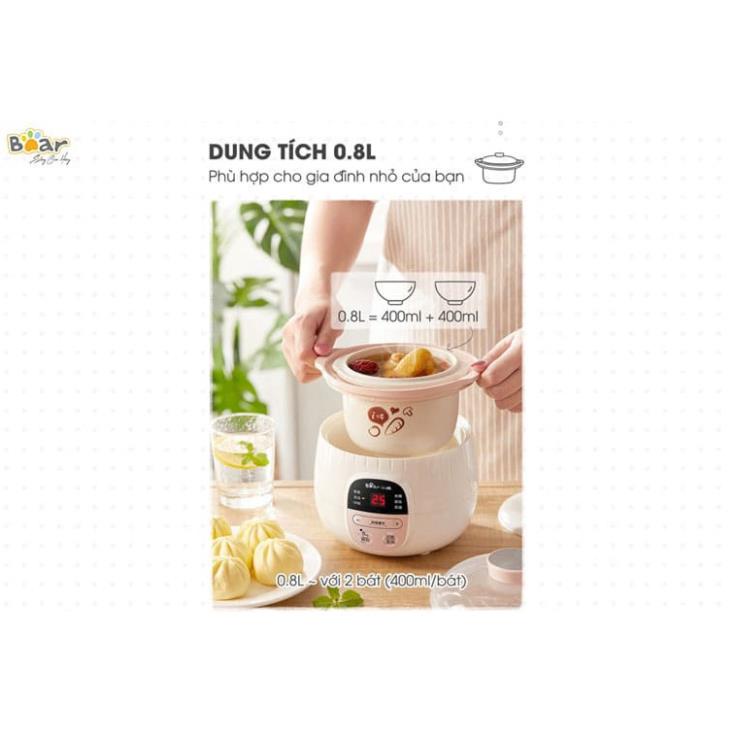 Nồi nấu chậm 0,8L Bear đa năng nấu cháo, hầm, ninh lõi bằng gốm cao cấp giữ nhiệt lâu Gia dụng Bear Tuli Mart