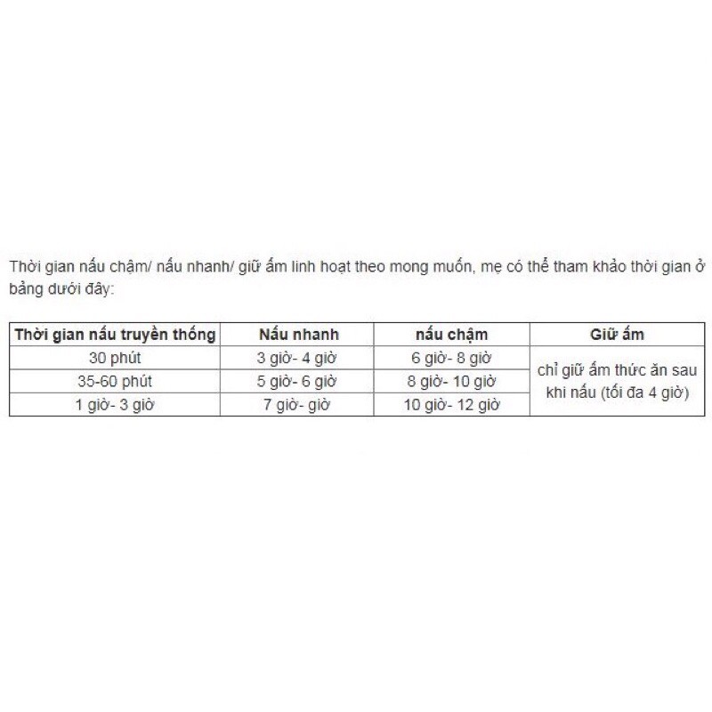 - Chế độ nấu nhanh: Bên cạnh chế độ nấu chậm, máy có chế độ nấu nhanh giúp mẹ linh hoạt lựa chọn để chuẩn bị thức ăn cho bé dù có bận rộn đến đâu. Thời gian nấu nhanh vẫn dài hơn thời gian nấu truyền thống giúp đảm bảo độ chín, độ dinh dưỡng và độ mềm nhừ thức ăn của bé.