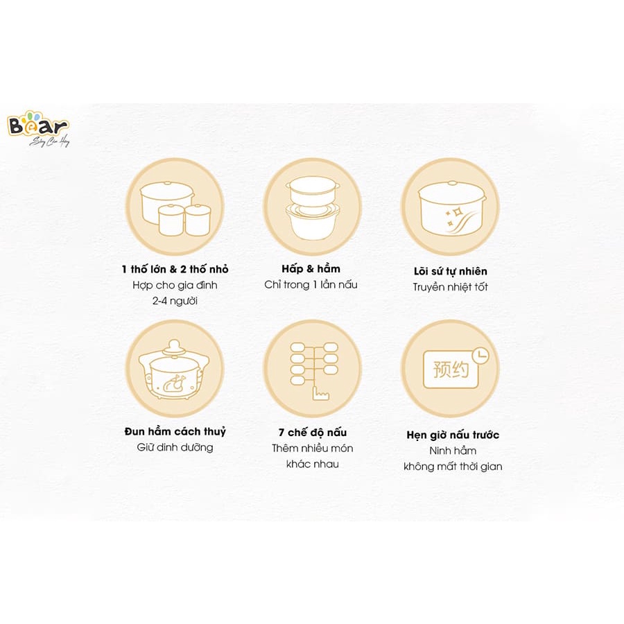 Thiết Bị Điện Gia Dụng > Đồ gia dụng nhà bếp > Nồi nấu chậm & Dụng cụ nấu chân không || Nồi nấu chậm Bear 1.6L bản quốc tế nấu cháo, ninh, hầm có tính năng hẹn giờ và giữ nhiệt Gia dụng Bear Tuli MartCòn hàng