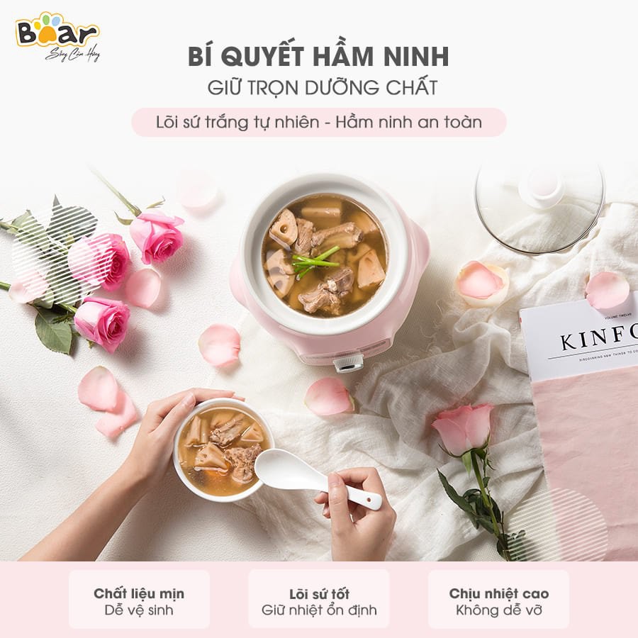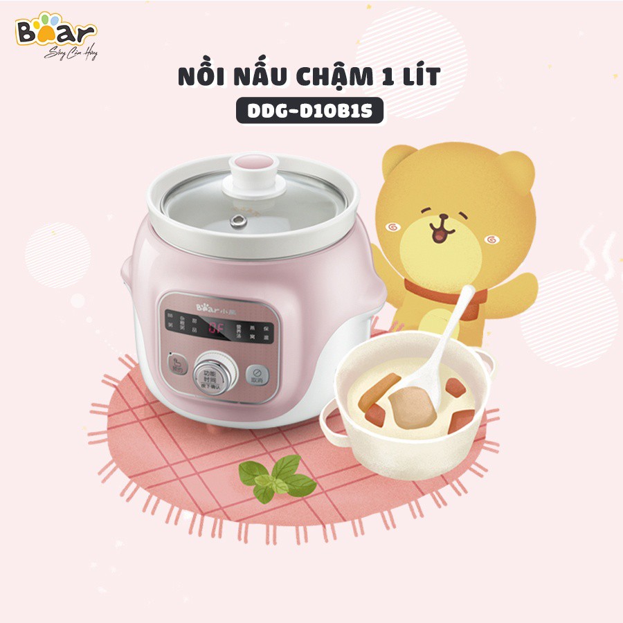 Nồi nấu chậm Bear 1l DDG-D10B1S. Nồi nấu chậm tiện lợi chính hãng BEAR cao cấp HAGU.