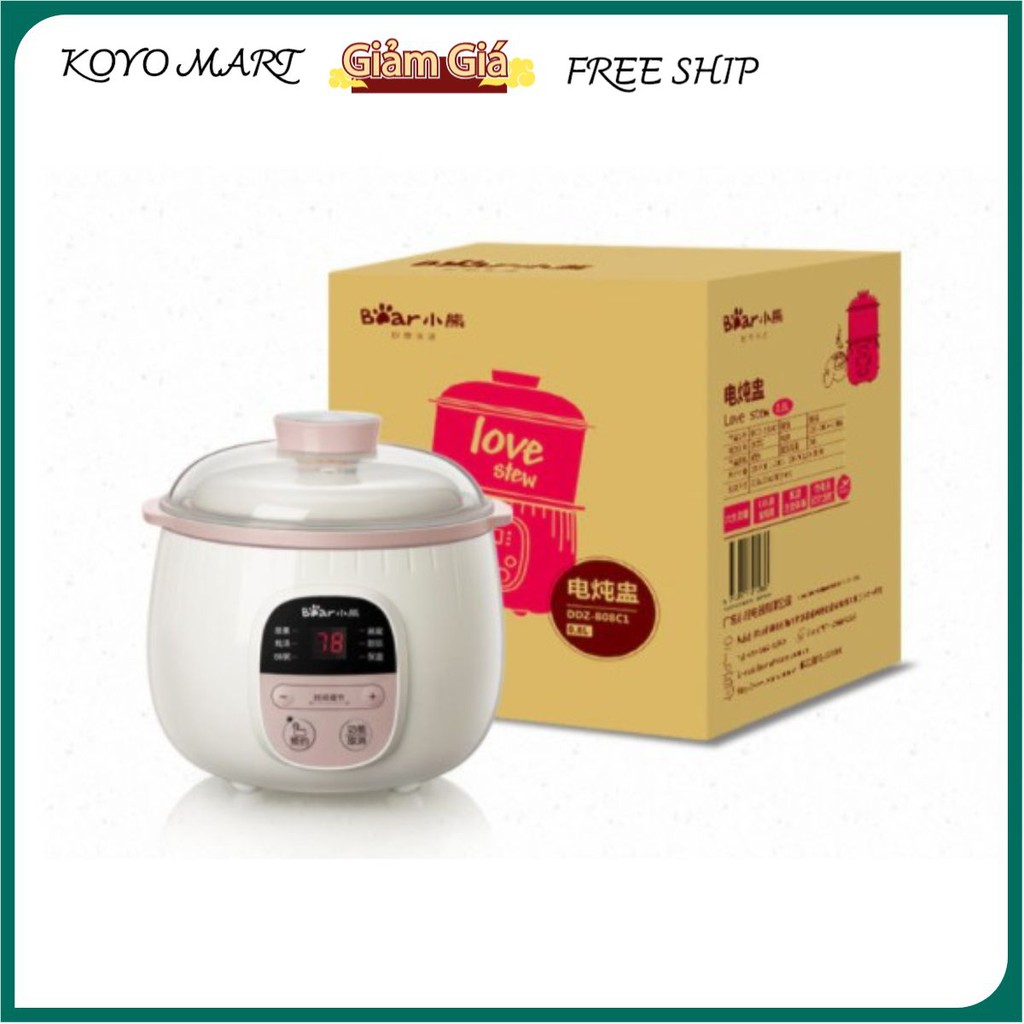 Nồi nấu chậm Bear B08C1S, dung tích 0.8 lít, ninh hầm, nấu cháo, chưng yên, hấp cách thủy, sử dụng gốm sứ cao cấp