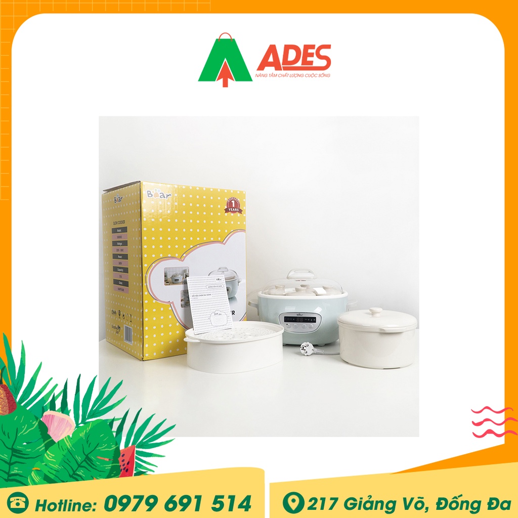 Nồi nấu chậm Bear SUBE003 2.5L có lồng hấp phiên bản quốc tế nấu ăn dặm cho bé