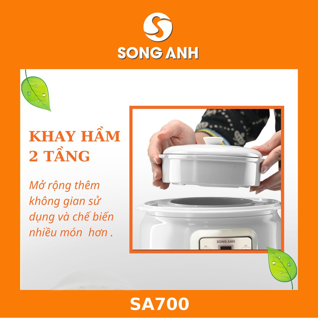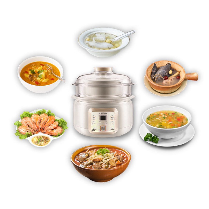 Thiết Bị Điện Gia Dụng > Đồ gia dụng nhà bếp > Nồi nấu chậm & Dụng cụ nấu chân không || Nồi nấu chậm, chưng cách thủy Song Anh 1.5L. Nồi nấu cháo, chưng yến cao cấp, bền bỉCòn hàng