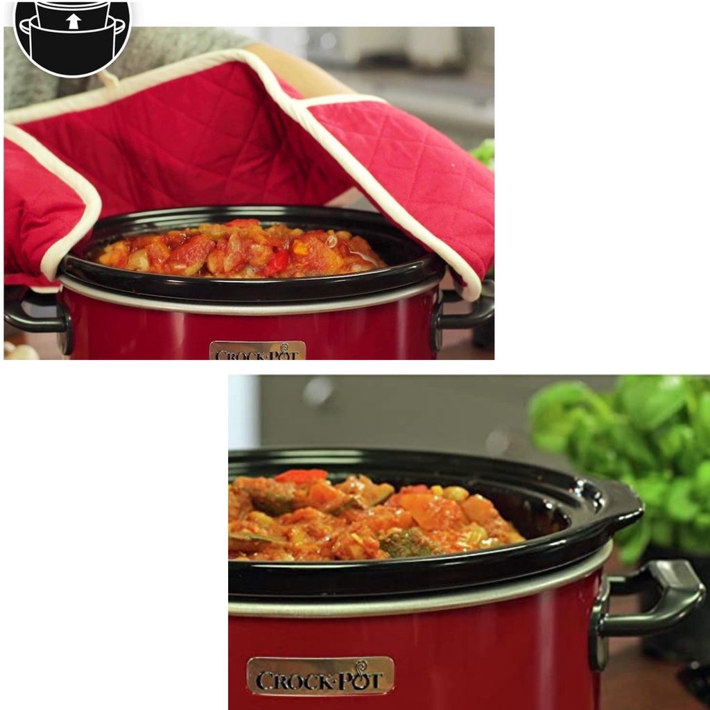 - Với dung tích 3,5 lít, hai cài đặt nhiệt và chức năng giữ ấm, nồi nấu chậm Crock Pot này rất lý tưởng cho các hộ gia đình nhỏ. Hướng dẫn sử dụng cũng chứa công thức nấu ăn. Thiết kế thanh lịch và vượt thời gian tuyệt đẹp được làm tròn bởi bề mặt màu đỏ đẹp mắt.