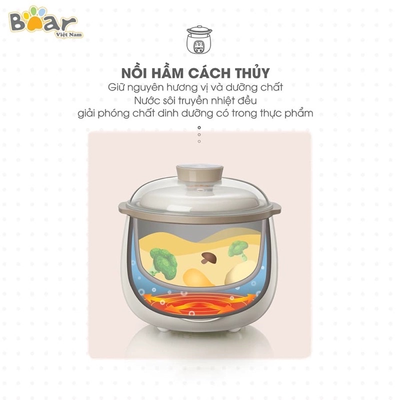 Nồi nấu chậm đa năng 4in1 0,8L Bear SUBE001, nồi chưng yến
