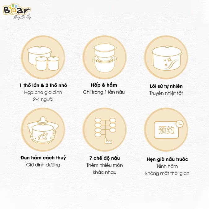 3. Nồi nấu chậm Bear có chức năng hẹn giờ nấu thông minh