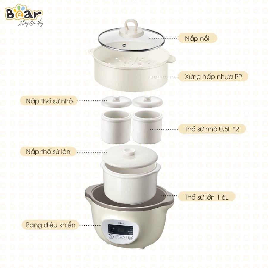 Giới thiệu Nồi nấu chậm đa năng kèm lồng hấp Bear 1.6l- SUBE002 (có lồng hấp). bản quốc tế