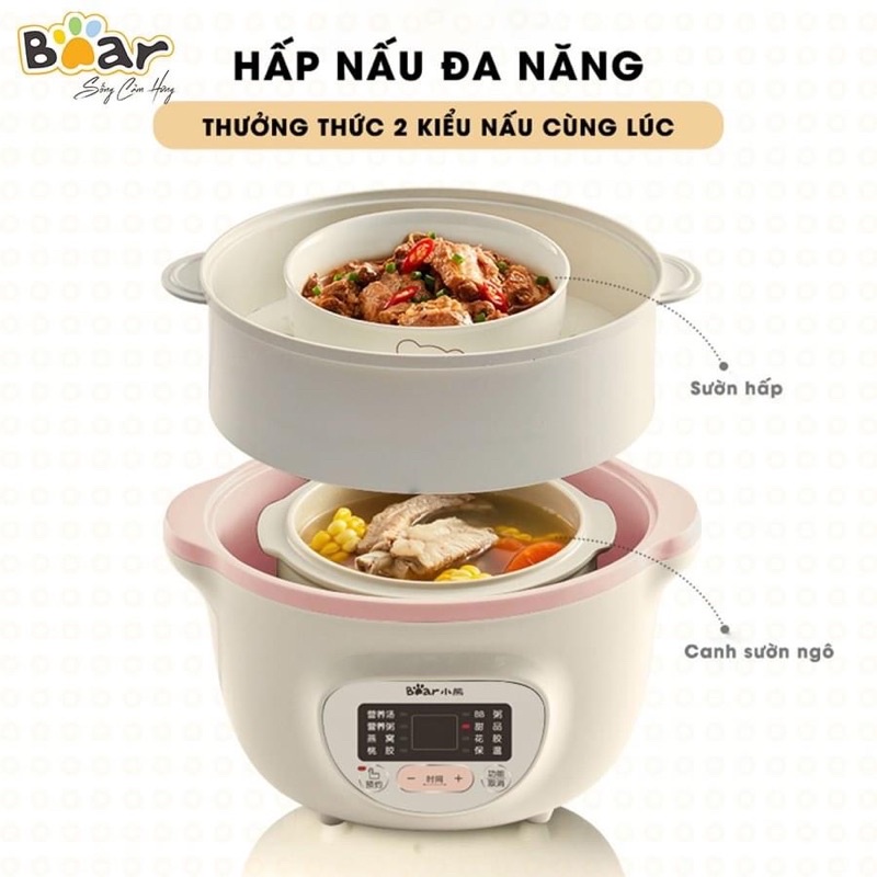 [Mã ELHADEV giảm 4% đơn 300K] Nồi nấu chậm đa năng kèm lồng hấp 1.6L Bear DDZ-D16J3