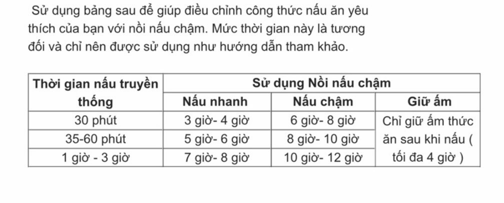 Thời gian nấu truyền thống__Nấu nhanh__Nấu chậm